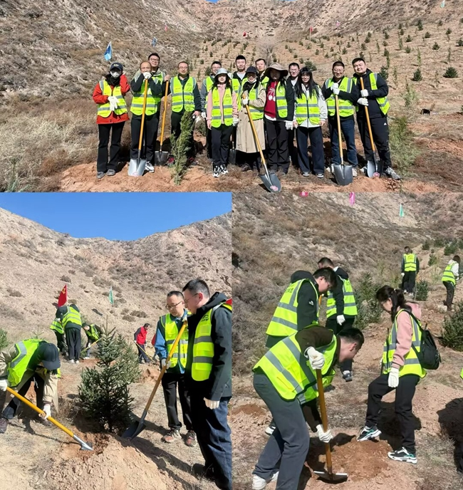 本次活动以“人人动手 人人尽责 共同建设美好家园”为主题,聚焦兰州市南北两山生态修复与绿化工程,助力黄河上游生态安全屏障建设。一大早,大家便赶到植树现场,三人一组、五人一队,有的挥锹挖坑;有的小心扶正苗木,仔细调整着栽植角度;有的提桶浇灌……植树现场氛围热烈,大家严格按照“三埋两踩一提苗”的栽植步骤规范操作,每道工序都一丝不苟、配合默契。铁锹与泥土的碰撞声、水桶的叮当声、此起彼伏的交流声交织在一起,汇成一曲生动的“春日植树交响曲”。