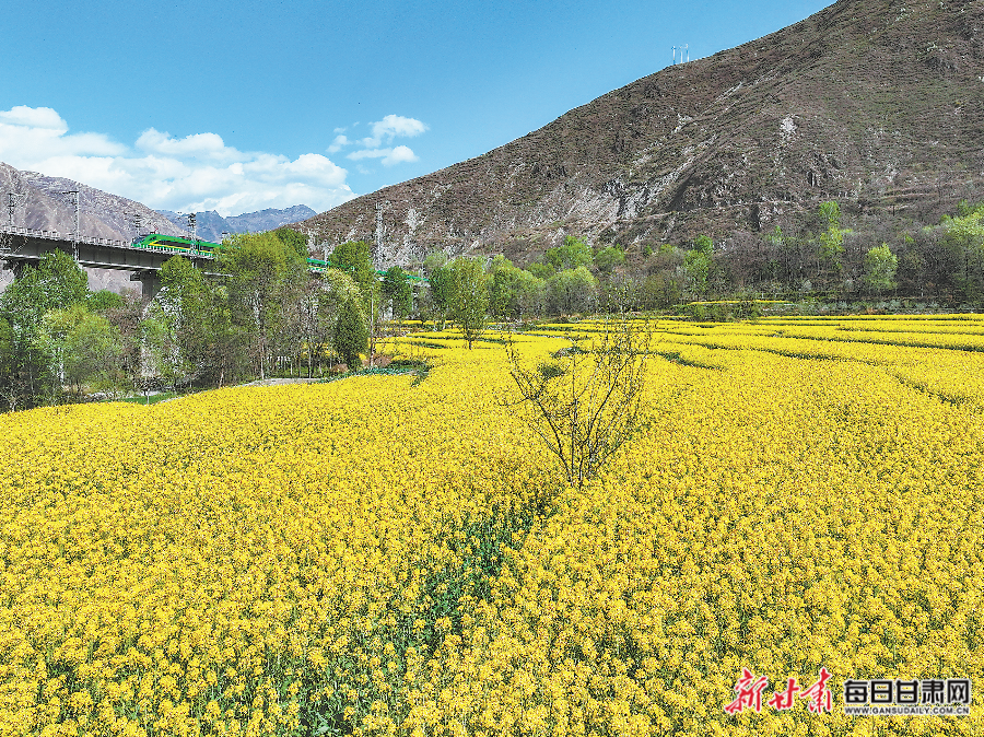 早春时节,地处白龙江畔的宕昌县沙湾镇沙坝村油菜花进入盛花期。 新甘肃·甘肃日报通讯员 胡卫东