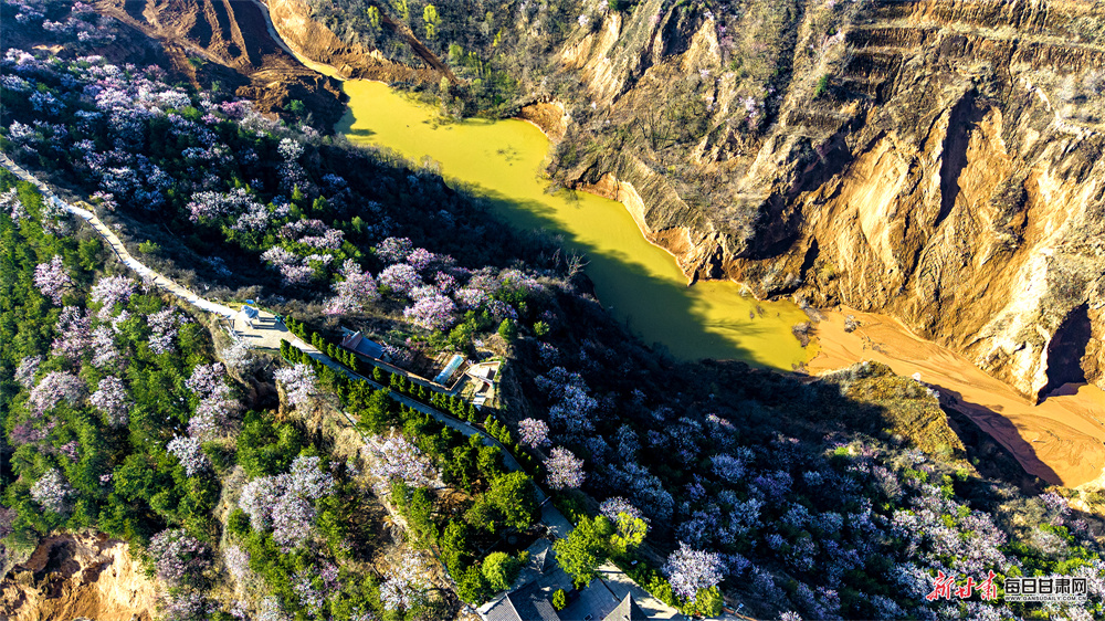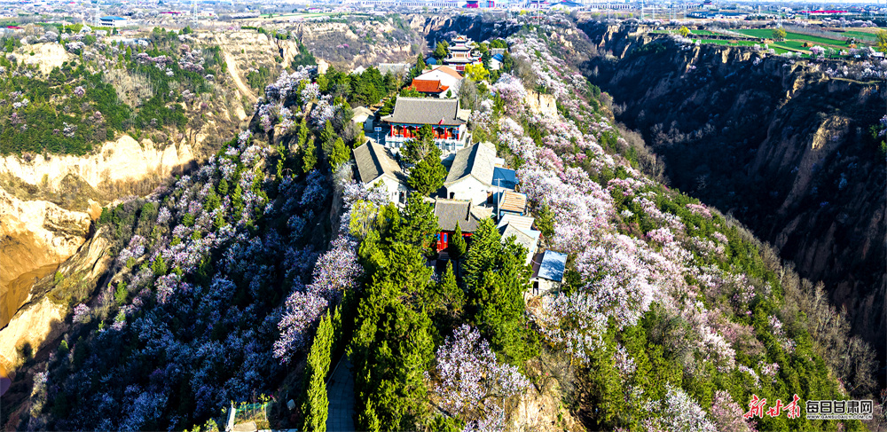 3月31日,西峰区小崆峒山的杏花迎来盛花期,漫山遍野粉白交织,繁花满枝、绚烂似锦,将整座山峦装点得温婉动人。古朴典雅的古建筑檐角掩映于烂漫花枝间,苍劲挺拔的青松错落点缀,景致层次分明、意境悠远空灵,勾勒出独属于陇东高原的绝美春日画卷。