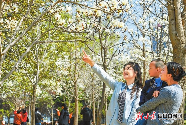 兰州黄河楼景区玉兰花迎来最佳观赏期。新甘肃·甘肃日报记者 裴强