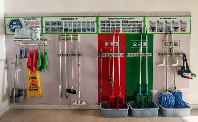 清洁(SEIKETSU):固化标准、温馨赋能。将卫生标准纳入长效流程,定期对易滋生细菌区域深度消毒,在场区、大厅摆放绿植、设置文化展板,打造温馨休憩环境,实现环境常态化洁净美观。