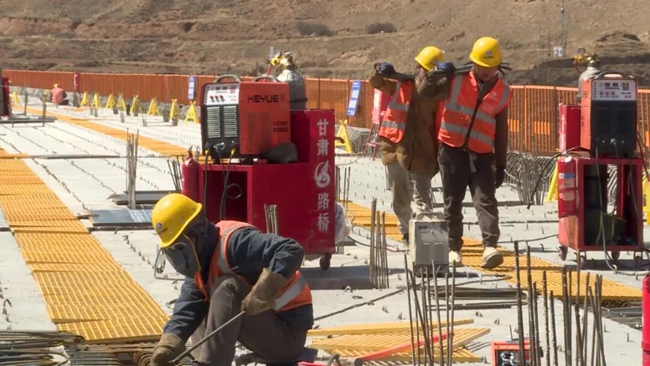 春日甘南高原,重点交通项目建设热潮涌动、施工全速推进。在S60卓合高速二期流顺河大桥施工现场,施工人员身着标准工装、配齐安全防护装备,有序开展钢筋绑扎、面层修整作业;现场机械轰鸣,振捣、焊接、测量校准等工序紧凑衔接、同步推进。建设者们紧盯工期、精细施工,全程严把工程质量与施工安全关,全力加快桥面施工进度,以实干笃行保障项目提速提效。