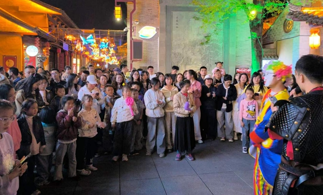 天水古城以“秦韵寻踪?藏珍拾趣”为主题,打破传统游览模式,把趣味互动融入古城街巷,让每一位游客都能沉浸式感受古城的独特魅力。汉服小姐姐化身“春日玩伴”,带领小朋友们手拉手围成圈,在欢声笑语中做游戏、跳舞蹈,清脆的童声回荡在古建之间;投壶体验区更是人气爆棚,小朋友们手持箭羽,瞄准目标,在传统游戏中感受古人的闲情逸致,家长们在一旁加油鼓劲,定格下无数温馨的亲子瞬间。夜幕降临,古城华灯初上,氛围感拉满。小丑互动、街头演艺轮番上演,热闹的氛围点燃了每一位游客的热情,大人小孩围聚在街巷中,跟着节奏欢呼、鼓掌,让古城的夜晚充满了欢声笑语。通过互动游戏让游客“玩起来”“嗨起来”,更让大家在游玩中读懂古城的历史、感受文化的温度。