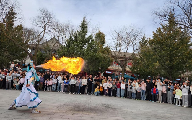崆峒山景区延续第七届桃花节的持续热度,紧扣“弹筝湖畔醉桃花,古道春风踏歌行”主题,深度融合桃花祈福、仙侠互动等元素,迎来春季旅游高峰。景区推出了一系列沉浸式特色活动,在弹筝湖、王母宫等地设置赏花打卡点与祈福许愿区,游客可系福条于花枝,寄托美好心愿;桃林轻集市提供汉服租赁、观景写生、养生八宝茶等服务,尽显春日雅趣。广成子对诗赠福、桃花仙子巡游、仙女团快闪、喜婆婆赐福、赛博机甲互动等节目轮番上演,营造出浓厚的节日氛围。中台常态化开展崆峒武术展演、川剧变脸喷火、武术教学等表演,“力贯钉尖、赌坊”等互动游戏吸引游客踊跃参与。值得一提的是,清明节期间,央视新闻直播间用25秒时长介绍了崆峒山景区假日旅游的火热场景,进一步提升了景区的知名度与影响力。