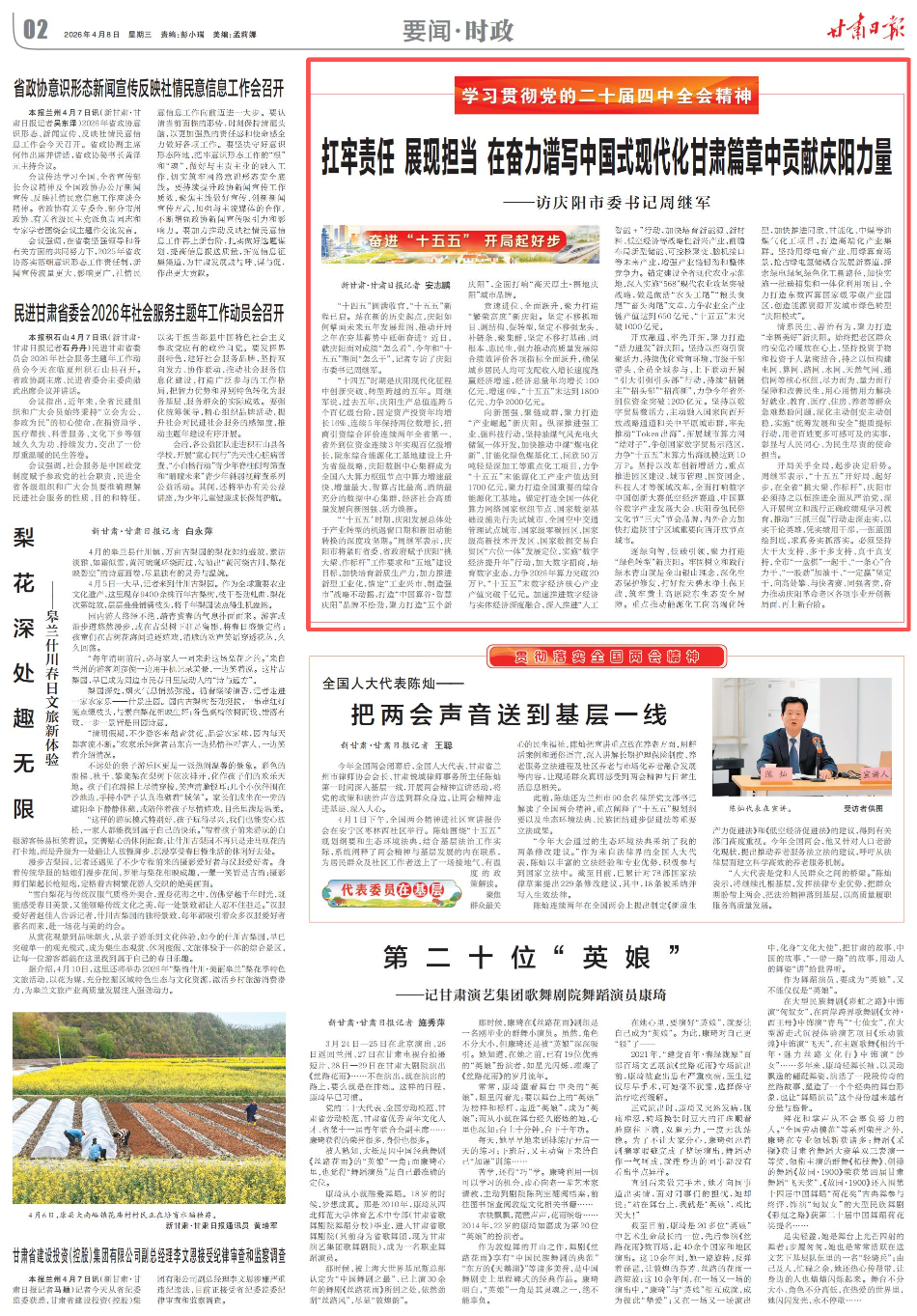 - 2026年04月02日【奋进“十五五” 开局起好步】锚定目标争一流 笃行实干开新局——访金川区委书记李生虎