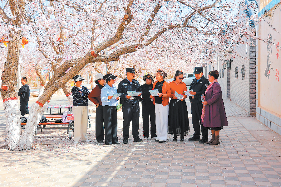 近日,民警在金塔县金塔镇杏花村开展反诈宣传。新甘肃·甘肃日报通讯员 葛万誉