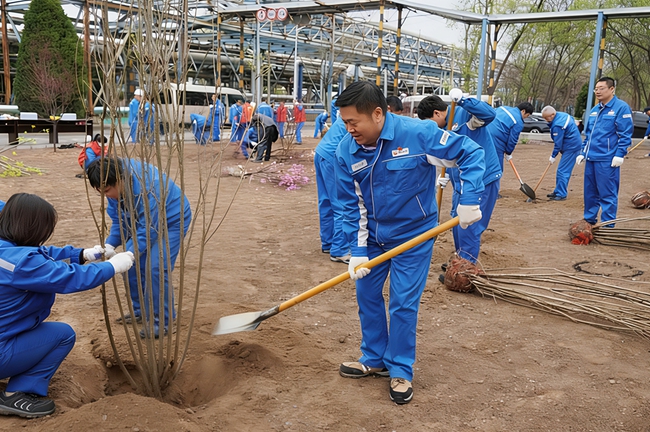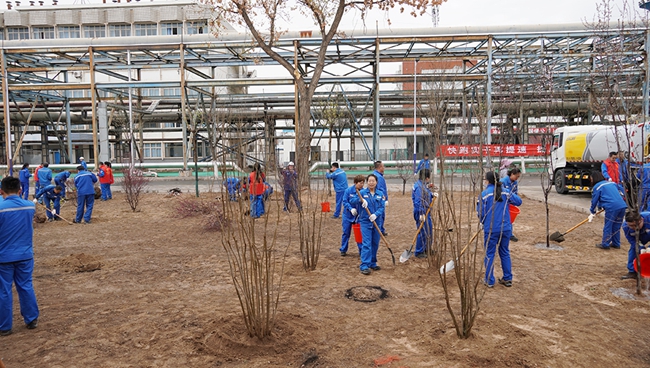参加植树活动的干部员工认真学习植树要领及注意事项,严格按照种植流程和标准要求,分工协作、密切配合,有序开展挖坑、栽植、平整土地、修整树盘、浇水等环节,栽种了金叶复叶槭、红梅、樱花、花石榴等各类苗木,为初春的厂区增添了勃勃生机。