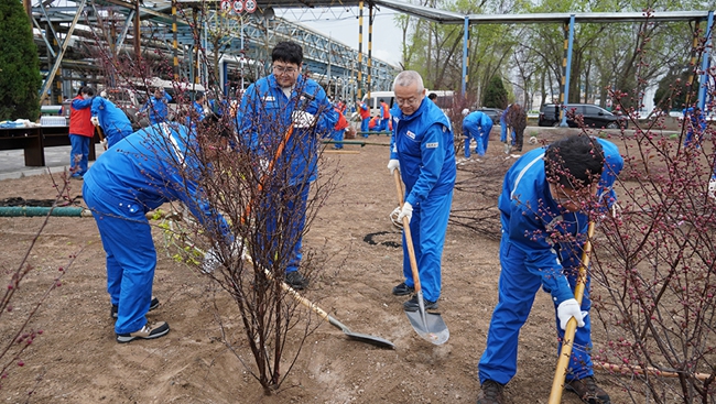 小雨润春土,植树正当时。4月8日上午,兰州石化公司开展2026年春季义务植树活动,在油品调合中心(国储公司)办公楼南侧空地种植树苗130余棵,为春日厂区增添了一片新绿。