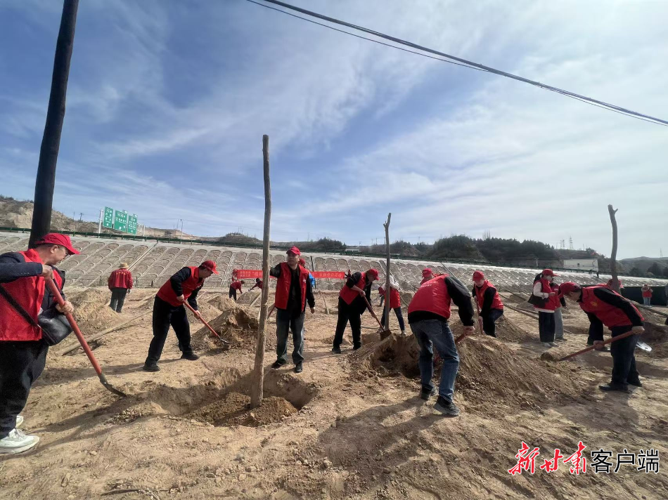 植树活动现场热火朝天。本文图片均由新甘肃·甘肃日报记者 王思璇 摄