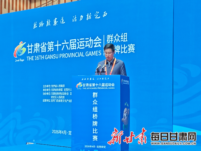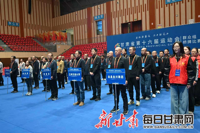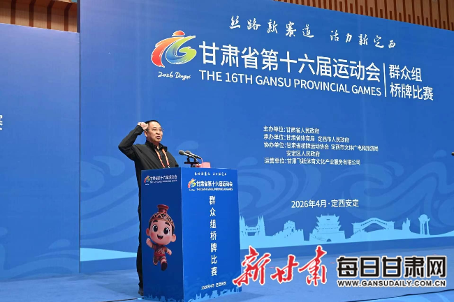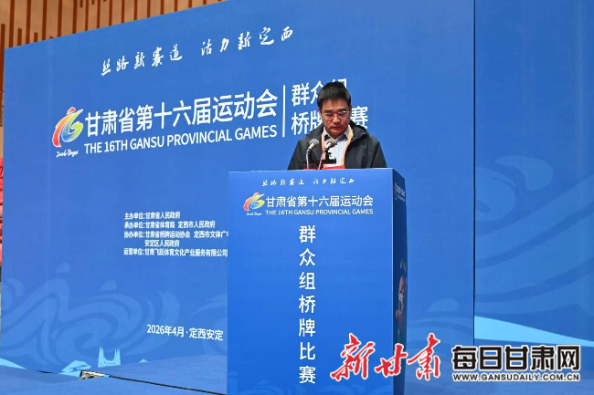 每日甘肃网定西讯(新甘肃·每日甘肃网实习生 邵雅琪)4月10日,甘肃省第十六届运动会群众组桥牌比赛在定西市体育馆开幕。本次赛事由甘肃省人民政府主办,甘肃省体育局、定西市人民政府承办,甘肃省桥牌运动协会、定西市文体广电和旅游局、安定区人民政府协办,来自全省各地的6支代表队将在为期两天的赛程中以牌会友、切磋技艺。开幕式现场庄重热烈、流程规范有序,各项仪式环节依次进行,为本次赛事拉开序幕。