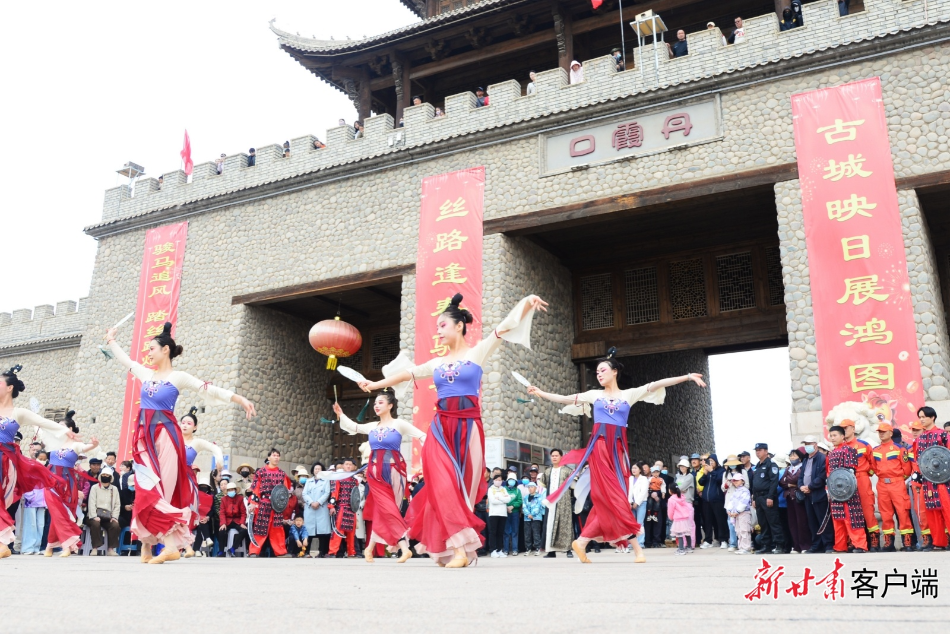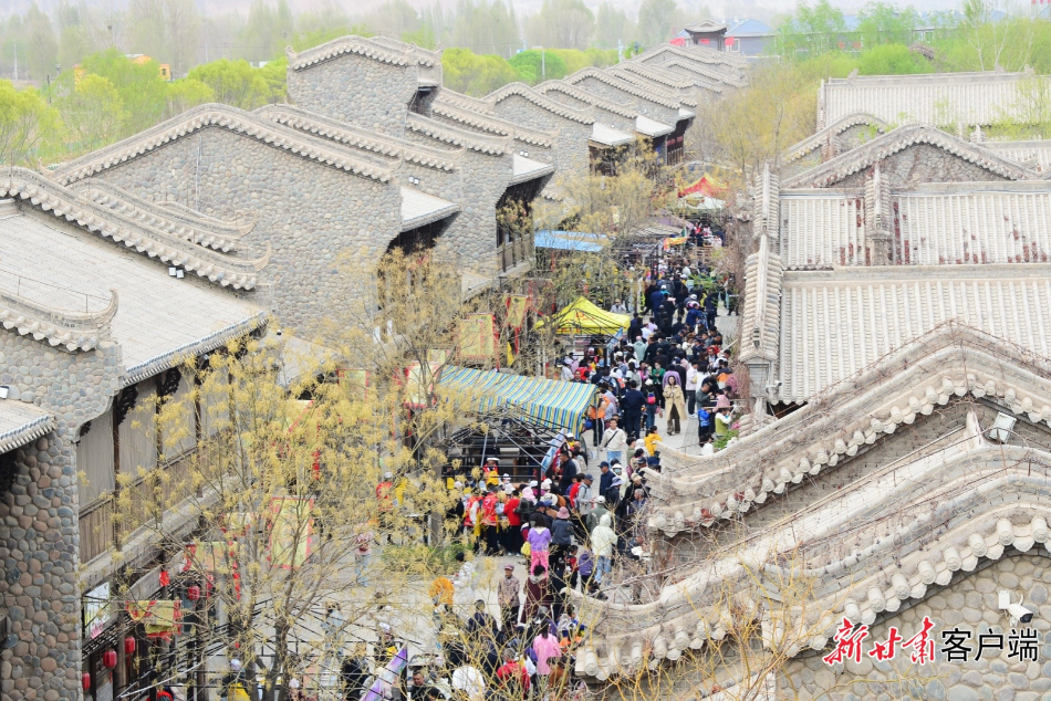 临泽县丹霞口文旅小镇古朴街巷里人潮涌动,热闹非凡。