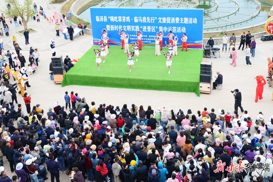 这是4月11日临泽县“嗨吃草芽鸡·临马我先行”文旅促消费主题活动上的热闹场景。