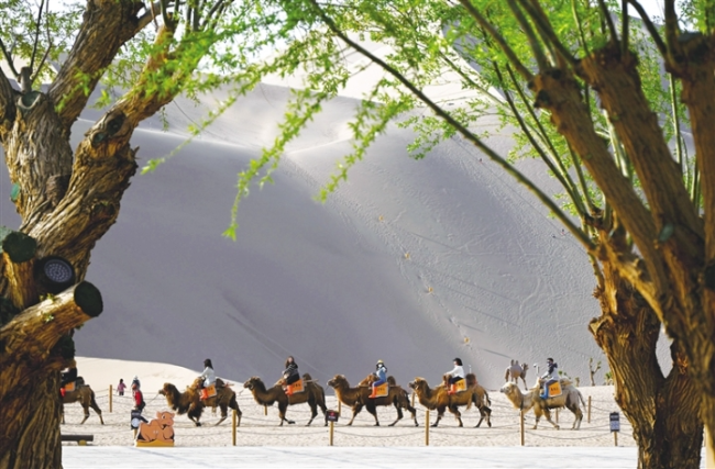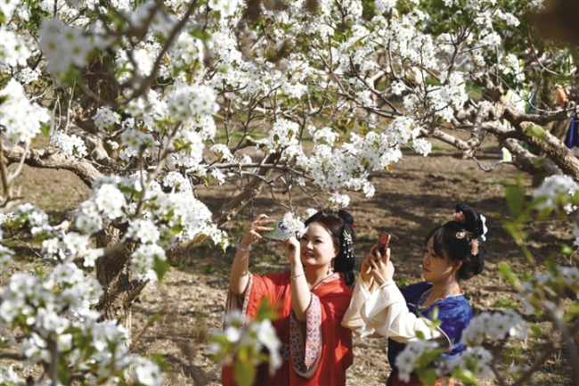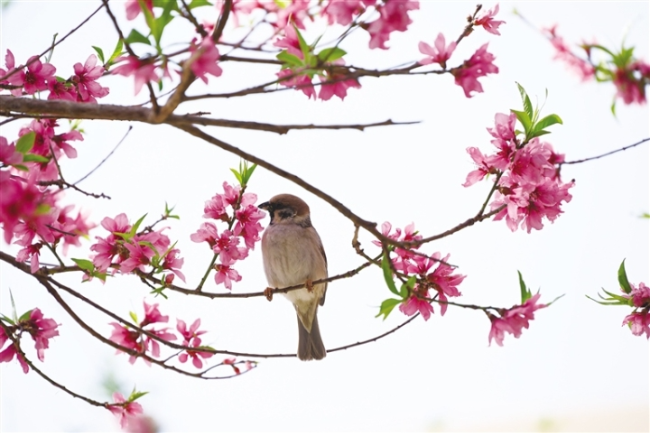 春日里的敦煌风景如画,鸣沙山月牙泉景区的桃花竞相绽放,与停留在枝头的麻雀相映成景;莫高镇的千亩梨花竞相绽放,如云似雪,花香漫溢。当地还举办了丰富多彩的文化活动,吸引游客踏青赏花、拍照打卡、乐享春光。张晓亮 摄
