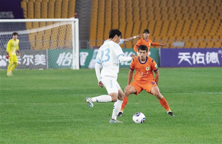 比赛打响后,山东泰山B队凭借年轻球员充沛的体能、灵活的跑动优势,以及细腻的传切配合,迅速掌控场上主动权,持续向兰州陇原竞技的防线发起猛烈施压。主场作战的兰州陇原竞技立足防守,伺机寻找反击机会,但在对手严密的中场绞杀下,进攻端始终难以形成有效威胁。