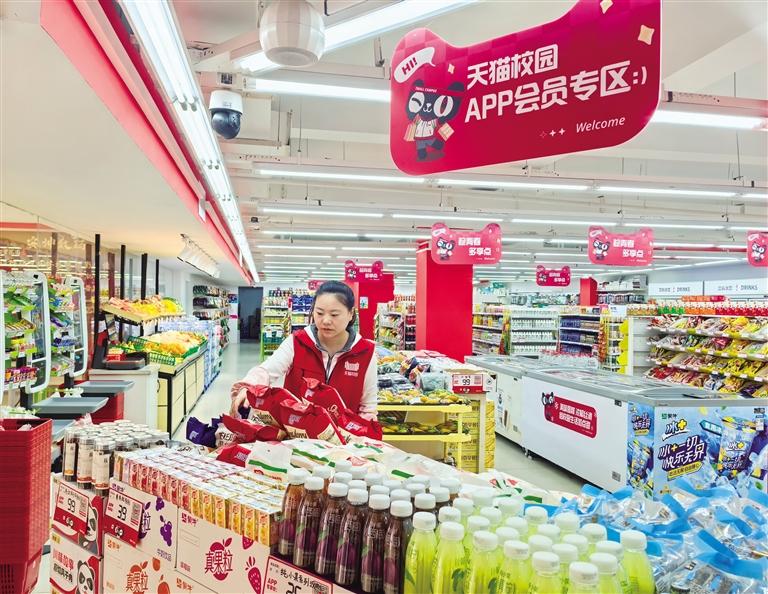 天猫校园北蒙超市工作人员理货