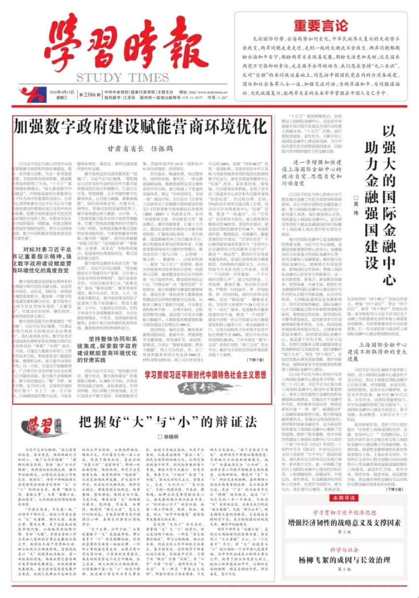 “十五五”时期推动高质量发展的新部署,对数字政府建设和营商环境优化提出了新要求。甘肃将坚持把数字政府建设作为提升政府效能的重要载体,加力构建开放、公平、非歧视的数字营商环境,努力让数字服务既有速度、温度,又有广度、效度,为更好融入全国统一大市场、加快高质量发展提供强力支撑和澎湃动能。