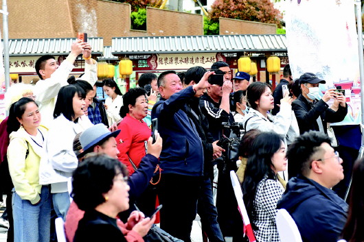 “热辣滚烫·寻味天水”——第三届非遗美食文旅嘉年华活动4月10日在天水古城启汉楼广场正式启动。启动仪式上,情景歌舞《东方的天水》、相声《猜地名》、舞蹈《印象秦州》、歌曲《来了不想走》、歌舞《母亲是中华》等精彩节目彰显天水文化、展现时代风貌,吸引众多市民与游客现场观看。