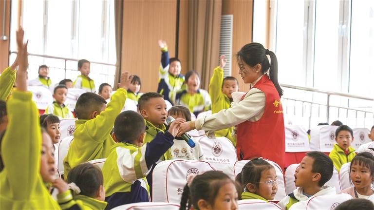 榆中县文远小学活动现场孩子们纷纷举手抢答。 赵万山 摄