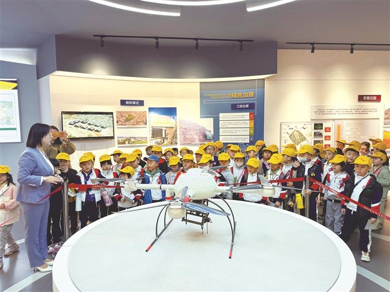 讲解员向孩子们介绍测绘无人机