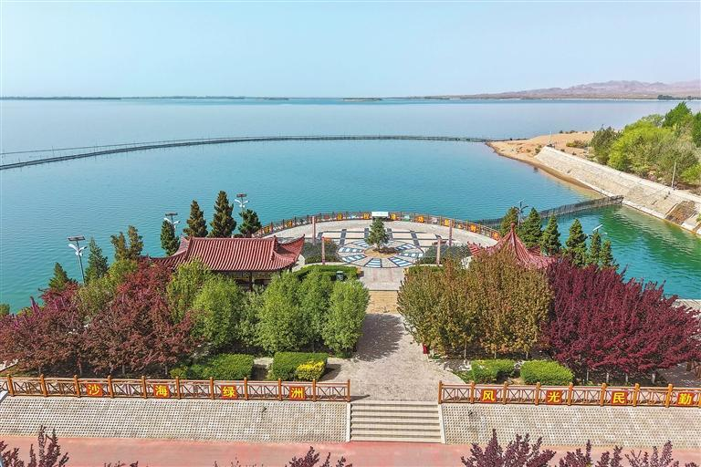 暮春时节,武威市民勤县红崖山水库碧波荡漾、风光旖旎,宛若一颗璀璨明珠镶嵌在苍茫大漠之中。新华社发