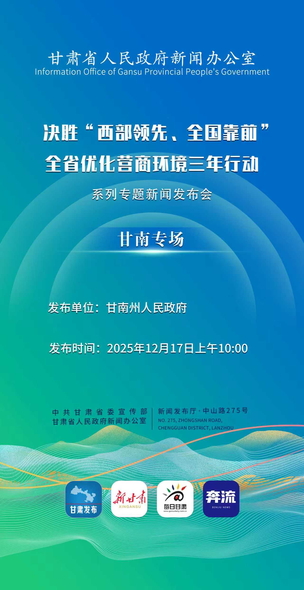 为加强营商环境建设宣传,进一步增强发展信心,推动政策落实,省政府新闻办组织举行决胜“西部领先、全国靠前”—全省优化营商环境三年行动系列专题新闻发布会,12月17日上午10时为系列新闻发布会第十四场——甘南专场。甘南州委常委、州政府常务副州长杨光龙介绍甘南州有关情况。出席发布会的还有甘南州营商环境建设局局长李世华,甘南州夏河县委副书记、县长王宏林。……全文